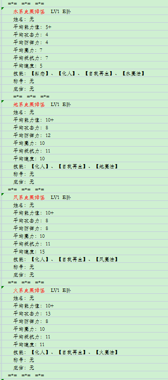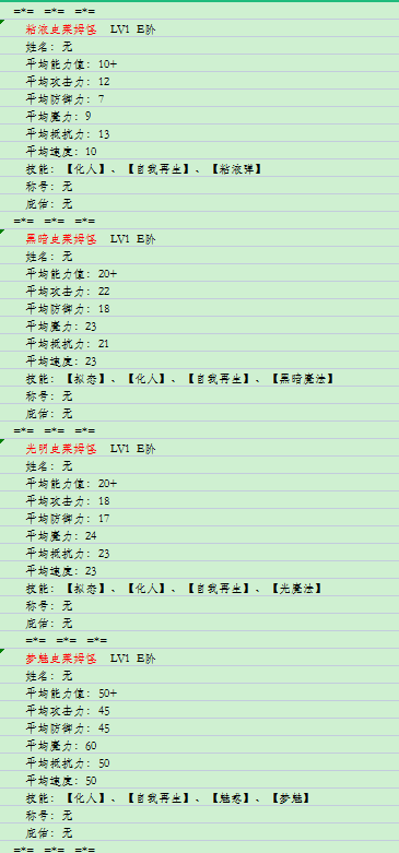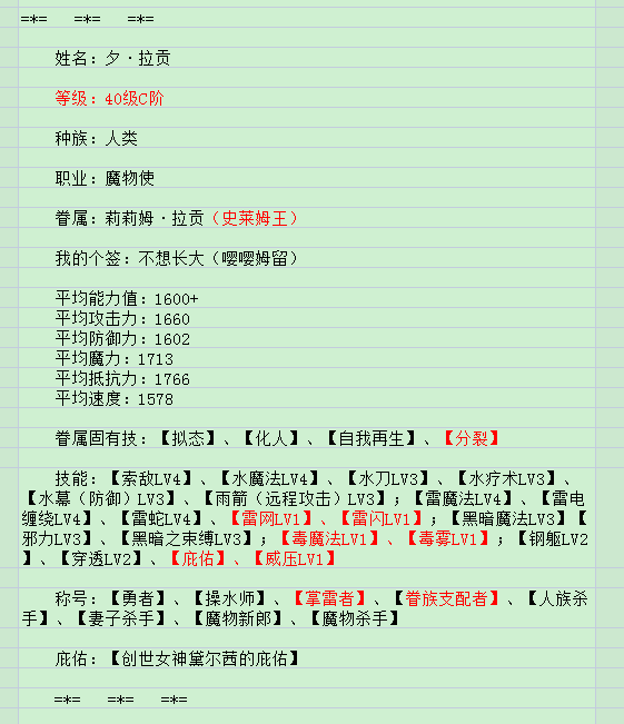 夕与嘤嘤姆提升到40级C阶后的属性表。【红色新加】