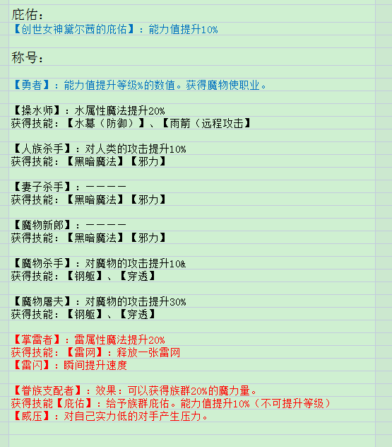 称号、庇佑属性