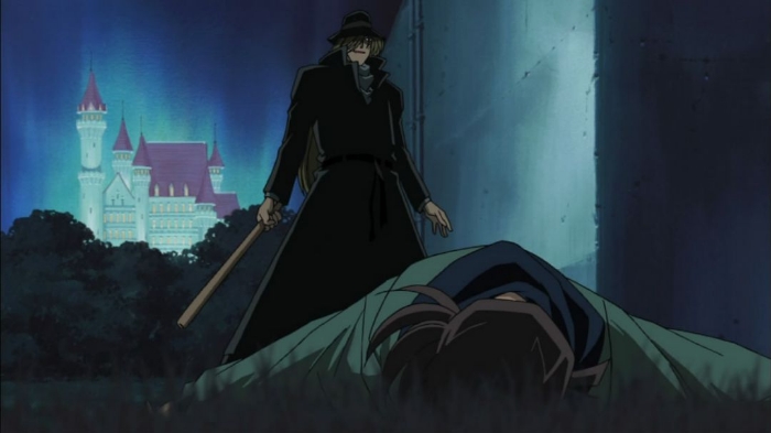 “侦探游戏到此结束了!”黑衣男子一棍子落下,命中了工藤新一的脑袋。