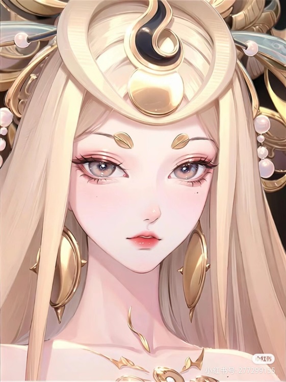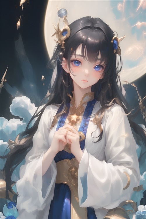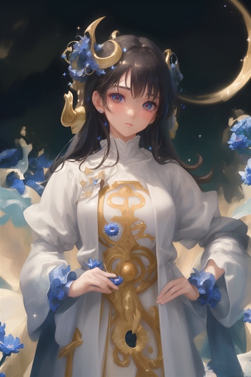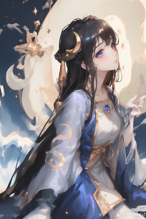 容貌:长发如黑色的瀑布一般柔顺地披散在她的肩膀和腰际。瞳孔璀璨如星辰,散发出清新的明亮。