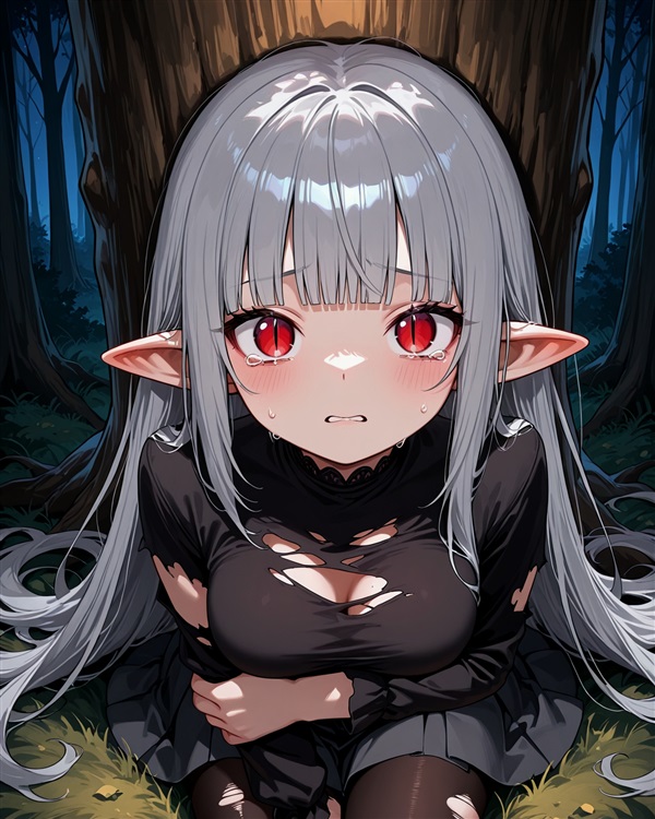 现在的贝芙莉,因为刚刚的突然一跤,衣服都变得破破烂烂的。