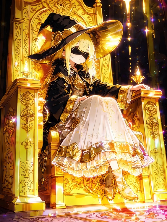 孤独、闪耀,她没想到这两个词能在一个人身上体现。黑金衣袍在金王座上铺开,烛火的光落在她的金发上,像一层流动的碎金,可那黑布蒙眼的轮廓,又给人留足想象空间。