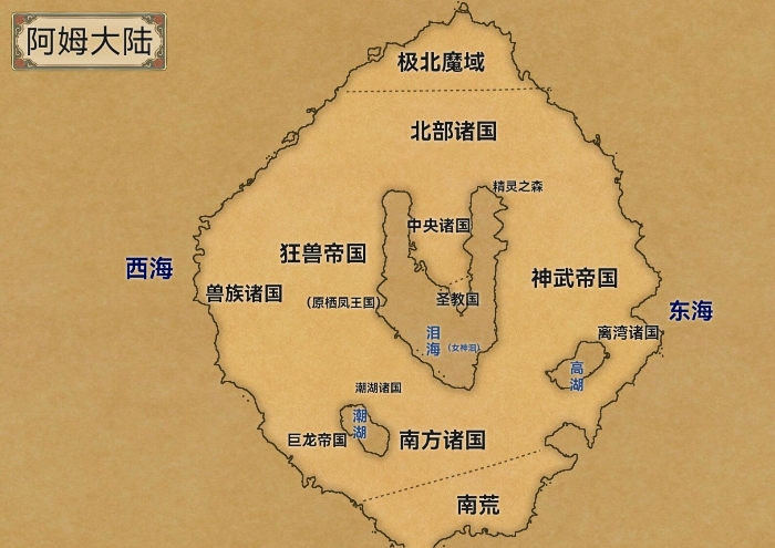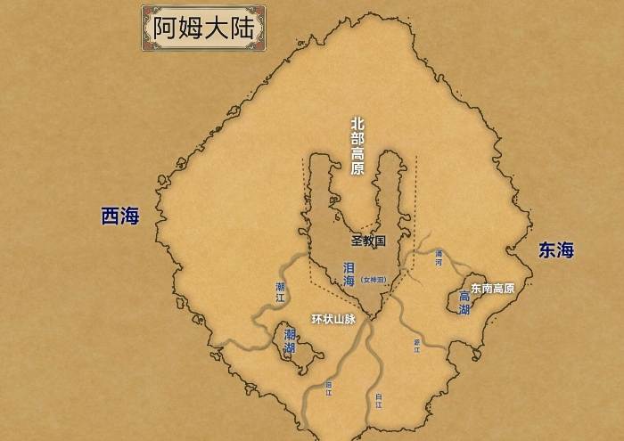 阿姆大陆~主角所处位置的圣教国在大陆中心,三面环海~