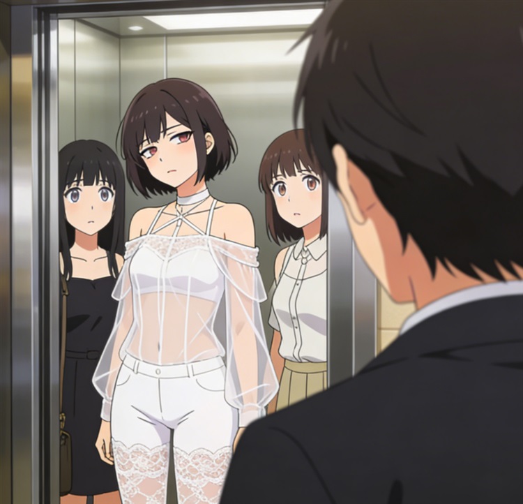 其中有一个穿的额,这么开放吗?白色蕾丝裤袜。上半穿着一个露肩装半透明,头发不长,神态慵懒,但是颜值特别高。