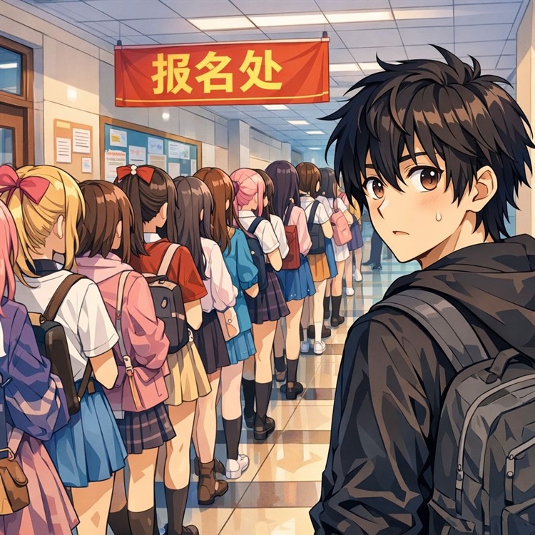 “我打听过了!这学校以前只招女生,今年是第一年招男生。据说是因为社会上有人抗议,说什么年代了还有全女校,不公平。所以学校就象征性招了几个男生,当吉祥物。”